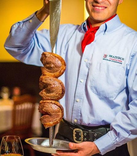 Whether your corporate event calls for a private room or an upscale experience for more than 100 people, Brazeiros would be happy to accommodate you. Each person can get exactly what he or she wants courtesy of tableside service from our Gaucho chefs, eliminating the complexity and unpredictable cost of individual ordering. Brazeiros may be a steakhouse, but vegetarians, vegans, and those who want lighter fare won’t be disappointed. Brazeiros offers an extensive salad bar with gourmet cheeses and charcuterie, as well as light and meatless options from our menu. Our regular menu is about 90% gluten-free. We regularly host events for corporate groups in every field from retirement planning to pharmaceuticals, and our flexible dining experience is the perfect fit for meetings and professional gatherings of all kinds.