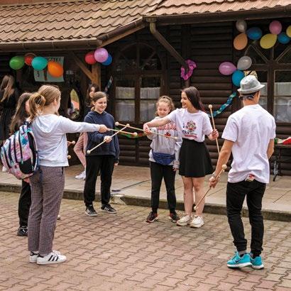 gry i zabawy zapoznawcze, integracyjne i budujące współpracę w grupie.