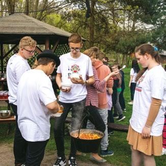 The picnic took place the day before the departure of the group. Youth welcomed guests, who came from local primary schools in Ciciborz Duży and Hrud, with the march with batons. Next, they presented a photo gallery, their impressions from the activities as well as the most interesting aspects of the cultural heritage of Southern Podlasie and Great Hungarian Plain. After the performance, the participants invited children to take part in prepared activities: preparing traditional Hungarian pogacz, weaving coasters, modelled on “pasiak” from Podlasie, on the looms, creating dolls and rugs from leftover fabric, traditional Hungarian and Polish games, shooting from Tatar bows, and preparing a traditional Hungarian dish in the kettle over the fire called - paprikás krumpli.