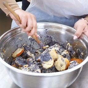 6. Drain croissants from milk, add the poppy seed mixture and pudding, and mix together;