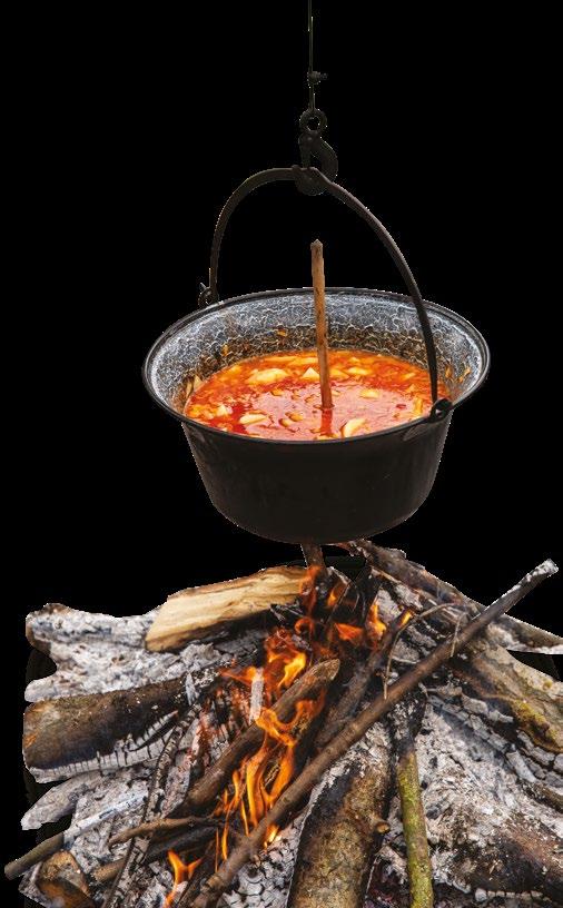 i degustując gulasz z kociołka przygotowywany na ogniu