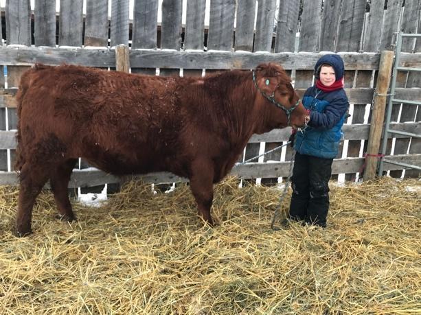 I’m Weston Pfahler, I’m 10 years old and in grade 5. This is my second year in 4-H and I’m happy to introduce you to my steer this year Donald Rump! Donald has yellow fluffy hair and is a bit of a mischievous fellow, but he really likes to eat. The Don is the first one at the trough when I go feed him grain and hay twice a day with my brother and sister. I won rate of gain last year, and I am hoping to again this year! Donald is a Charolais cross, and I picked him out from my neighbours herd, he stuck out from the crowd because of his color. Thank you to my buyer from last year VOLD JONES & VOLD AUCTION CO LTD for buying my steer Justin Beefer. Hope to see you all at the show and sale in June!