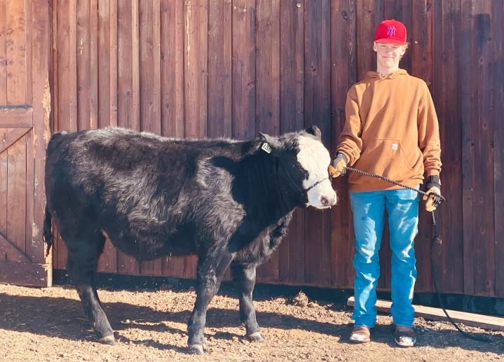 Hi, my name is Kolby Siegle. I’m an intermediate in my first year of 4-H. This is my Black Simmental steer project named Gus. He is very gentle and loves head scratches. He weighed in at 580 lbs and is estimated to finish at 1,385 lbs