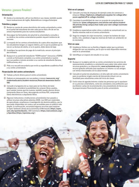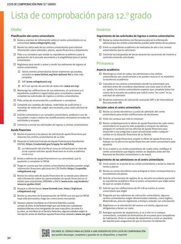 • Se completa en el último año de escuela secundaria y cada año que se asiste a la universidad.