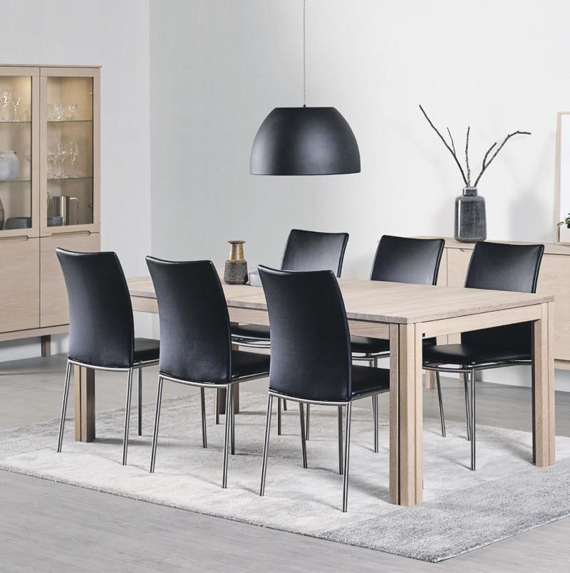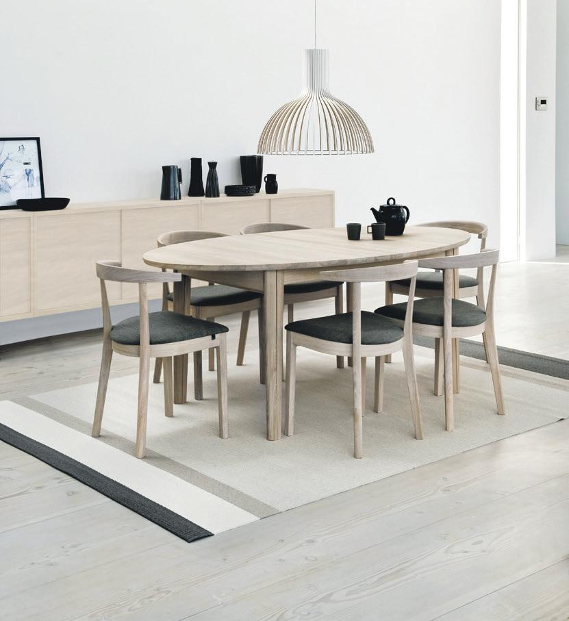 x B:109 x H:74 cm Inkl. 2 tillægsplader Spar 25% Skovby SM52 spisebordsstol Hvidolieret eg med stofgruppe 1 Mål: H:75 x B:52 x D:52 cm