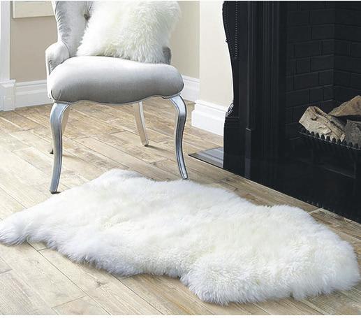 Hvid imiteret pels med ben i mørk eg Mål: H:98 x B:76 cm