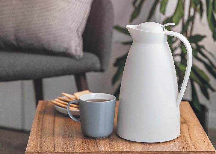 Stel i hvidpigmenteret eg med sort laminat bordplade