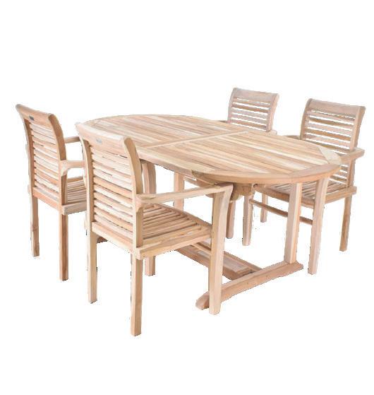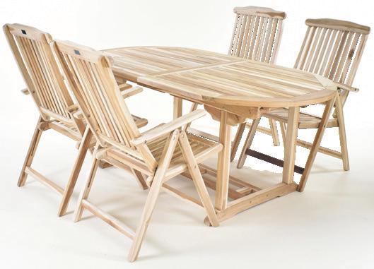 Ovalt havebord med udtræk og 4 havestole med armlæn