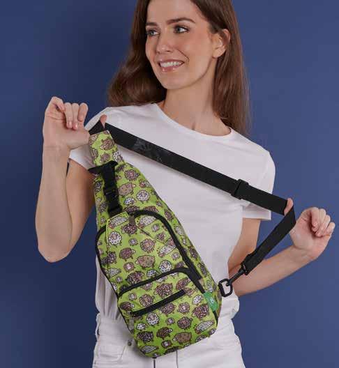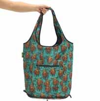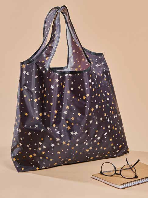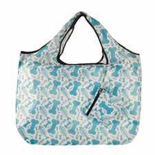 Our large shopping bag is strong, stylish, and sustainable! Easily folding into a pocket-sized pouch, these ecofriendly grocery bags are convenient to take anywhere.