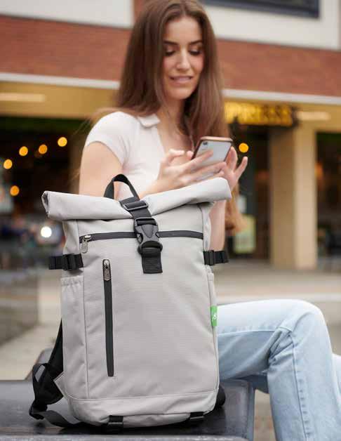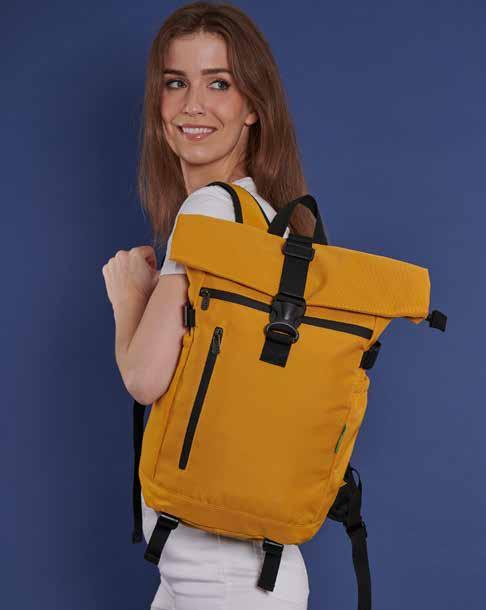 Our Waterproof Recycled Canvas Roll Top Backpack offers multiple internal pockets for efficient organisation of gadgets, provides protection against rain or spills and is ideal for everyday urban or outdoor use.