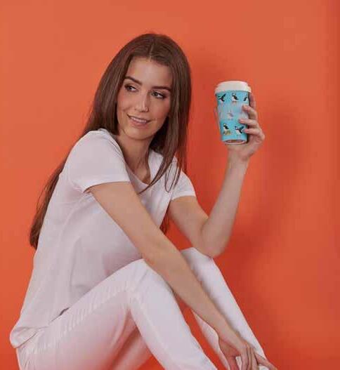 Our lightweight Recycled Travel Cup is ideal for coffee on the go. It’s made from ten recycled plastic bottles, is dishwasher safe, and LFGB food safety approved.