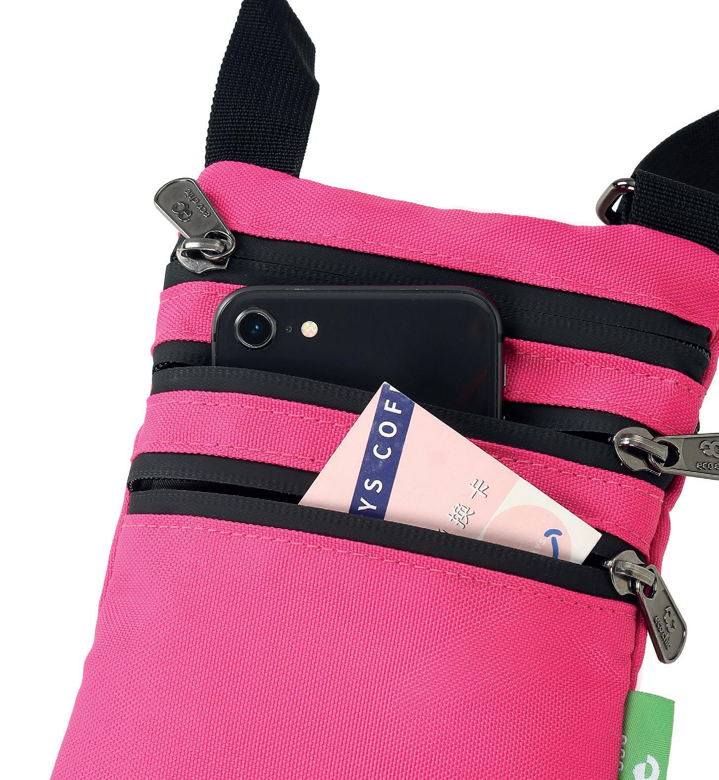 Our Water Resistant Recycled Canvas Crossbody Phone Bag offers ample storage and organisation for phones, keys, cards and cash, ensuring everything has its place.