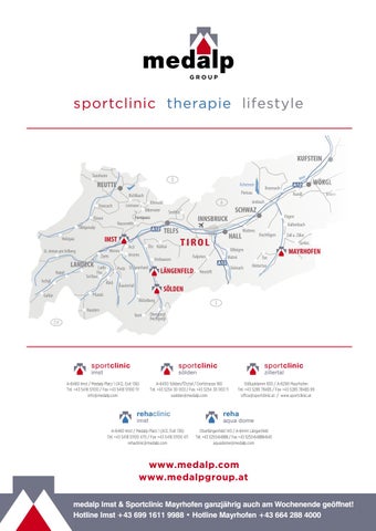 Tel. +43 5253-64888 / Fax +43 5253-64888-640 medalp Imst & Sportclinic Mayrhofen ganzjährigTel.auch geöffnet! +43 5442 am 64 207 Wochenende / Fax +43 5442 65 364 aquadome@medalp.com ortholandeck@medalp.com 07.04.14 Hotline Imst +43 699 1611 9988 • Hotline Mayrhofen +43 664 288 4000 med_Inserate_2014.indd 2