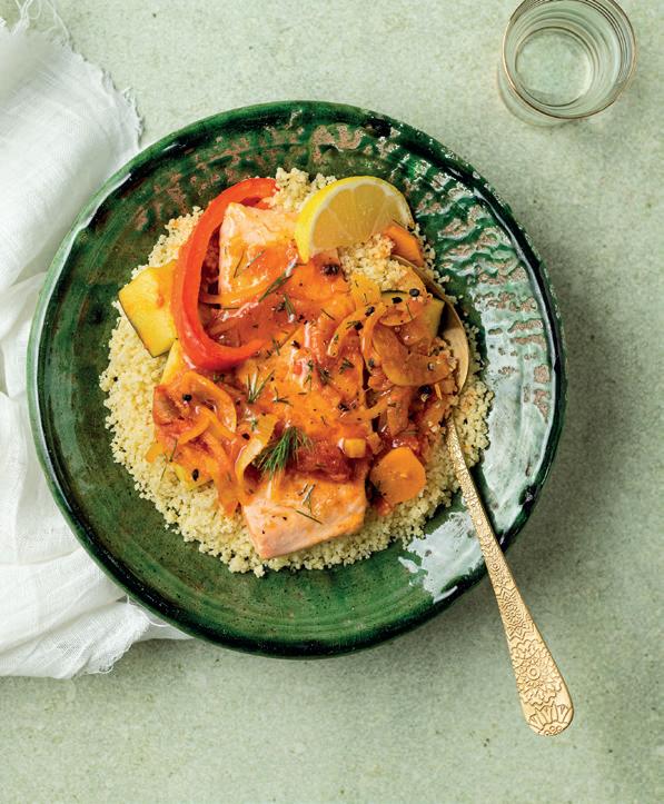 Info: Couscous ist ein typisches Gericht im gesamten Maghreb, seine Zubereitung variiert von Region zu Region. Auch die Zutaten sind je nach Region und Klima unterschiedlich. Couscous ist in der Alltagsküche eine ebenso feste Größe wie bei festlichen Anlässen, je nach Rezept wird er kalt oder warm, salzig oder süß gegessen. Hierzulande wird er meist einfach mit heißem Wasser übergossen, zugedeckt und rund zehn Minuten quellen gelassen. Die traditionelle Methode ist etwas aufwändiger: 500 g Couscous in einer großen Schüssel verteilen, 2 EL Olivenöl zugeben und alles zwischen den Händen zerkrümeln. Die Schüssel mit einem Küchentuch zudecken und 20 Minuten ruhen lassen. Anschließend den unteren Teil eines Couscoussiers (oder Dampfgarers) mit Wasser füllen und zum Kochen bringen. Den Couscous in den Dämpfeinsatz geben, in den Topf einsetzen und ein erstes Mal 15 Minuten dämpfen. Den Dämpfeinsatz vom Topf nehmen, den Couscous in die Schüssel zurückleeren und ein wenig abkühlen lassen. 1 TL Salz zugeben und behutsam vermengen. Anschließend ein zweites Mal dämpfen. Für einen perfekten Couscous wird er bis zu drei Mal gedämpft.