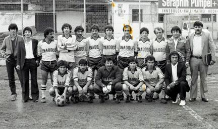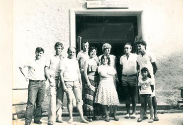 Mitglieder des 1971 in Innsbruck gegründeten jugoslawischen Arbeitervereins Bratstvo vor dem Vereinslokal in Innsbruck, das ihnen vom ÖGB zur Verfügung gestellt wurde. Leihgabe Verein Bratstvo, 1980