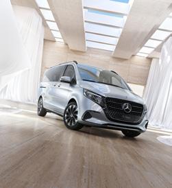 Auch die neue Mercedes-Benz V-Klasse zeichnet sich durch beeindruckende (technische) Daten aus. Das Raumangebot gleicht einem Wohnzimmer und die Ausstattungsoptionen lassen sich ideal auf Ihre Bedürfnisse abstimmen. Modell-Linien und Pakete wie AMG Line, V-Klasse EXCLUSIVE, V-Klasse AVANTGARDE oder V-Klasse STYLE sorgen für noch mehr Exklusivität und Sportlichkeit. Alle Ausführungen haben gemeinsam, dass sie im Sinne von Sicherheit im Straßenverkehr konzipiert wurden. Das Parkpaket mit Rückfahrkamera, optional mit 360-Grad-Kamera, hilft beim souveränen Einund Ausparken. Eine Vielzahl modernster Assistenzsysteme wie Spurhalte-, Brems-, Abstands- und Totwinkel-Assistent unterstützen sicheres Fahren und tragen zum Schutz aller Verkehrsteilnehmer bei. www.pappas.at