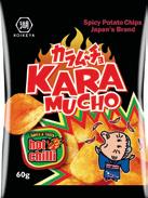 Achtung scharf: Die japanischen KaramuchoChili-Chips von Koikeya halten, was die Verpackung verspricht. 2,99 Euro.