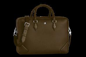 Stil ist kein Zufall, sondern ein Gefühl, das man sehen kann. Die elegante Dokumententasche von Montblanc aus luxuriösem genarbtem Leder in Khaki zelebriert die Verbundenheit der Marke mit der Kultur des Schreibens durch federförmige Details an den Reißverschlussschiebern und Griffen. Erhältlich um 2.200 Euro in der Montblanc Boutique Innsbruck.
