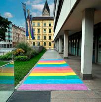 Im Gerichtsalltag sollen Gleichberechtigung und Akzeptanz eines jeden Menschen – unabhängig von Geschlecht, Nationalität, Religion, Herkunft, sexueller Orientierung oder einer Beeinträchtigung –vorbildlich gelebt werden. Die Wahrung der Unantastbarkeit der Würde des Menschen ist Kernaufgabe unserer Gerichtsbarkeit (Artikel 1 des Gleichbehandlungsgesetzes). Ein starkes und sichtbares Zeichen für diese Werthaltung ist der Regenbogen. Der ziert nun unter anderem den Vorplatz des Gebäudes in der Innsbrucker Maximilianstraße, in dem das Landesgericht und das Oberlandesgericht untergebracht sind. Gefällt uns!