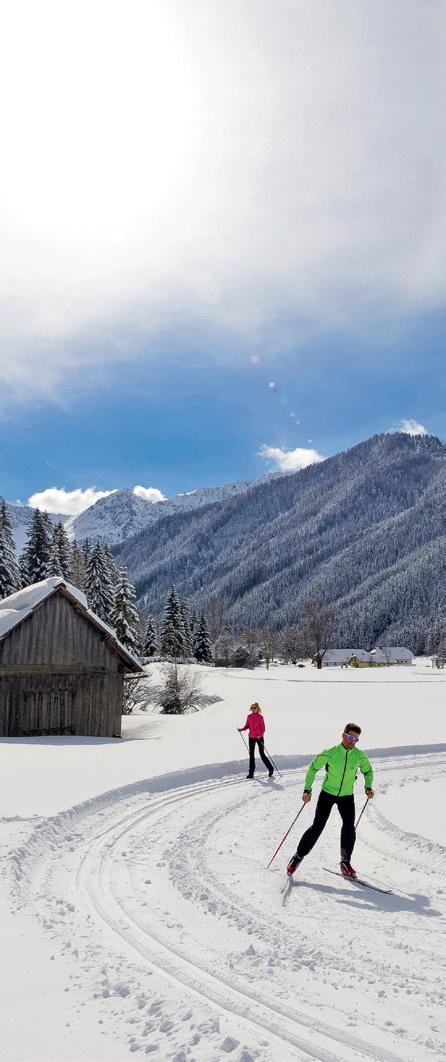 B ei der großen Beliebtheit des Skifahrens wird leicht auf dessen kleinen Bruder, den Langlauf, vergessen. Doch dieser ist nicht zu unterschätzen. Denn während es beim Skifahren für begrenzte Zeit nur in eine Richtung – nämlich bergab – geht, ist man beim Langlaufen gänzlich unabhängig von Liften und kann nonstop so weit und so lange laufen, wie man möchte oder es die Loipen zulassen. Die Geschwindigkeit und folglich auch die Anstrengung hat man dabei selbst in der Hand (und in den Beinen), was einerseits kurze und fordernde Auspowersessions für Kraftlackln bietet, andererseits Ausdauerfreudigeren stundenlange Touren ermöglicht. Für den Neueinsteiger machen sich ein
