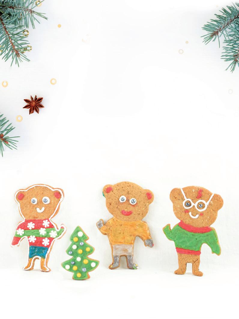 Anschließend mit einer Mischung aus Pu- derzucker und etwas Wasser bestreichen und nach Lust und Laune verzieren.
