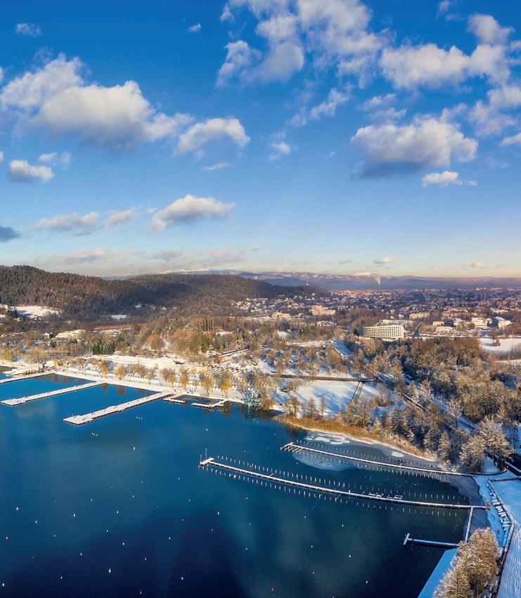 Der Wörthersee ist nicht nur im Sommer ein Genießer-Kleinod, sondern hat auch im Winter seinen ganz besonderen Charme. Hier liegen zahlreiche Skigebiete nah beisammen, aber auch Langläufer, Rodler oder Winterwanderer finden ideales Ge(h)lände. Winterwandern ist die entspannteste Variante, um die Kärntner Natur mit und ohne Schnee abseits des Trubels für sich zu entdecken. Wer mag, kann dabei auch gleich ein paar Gipfelerlebnisse mitnehmen. Und wenn es richtig viel geschneit hat, packt man sich die Schneeschuhe unter die Füße. DAS SEEPARK in Klagenfurt ist der ideale Ausgangspunkt, um den Winter in all seinen Facetten zu genießen – herrliche Sicht auf den winterlichen Wörthersee inklusive.