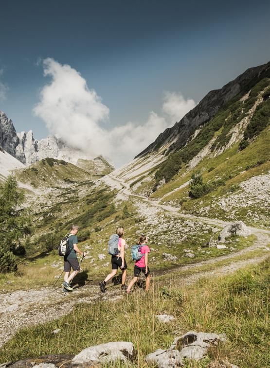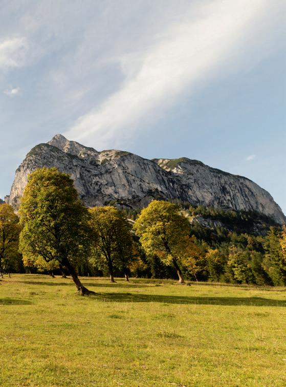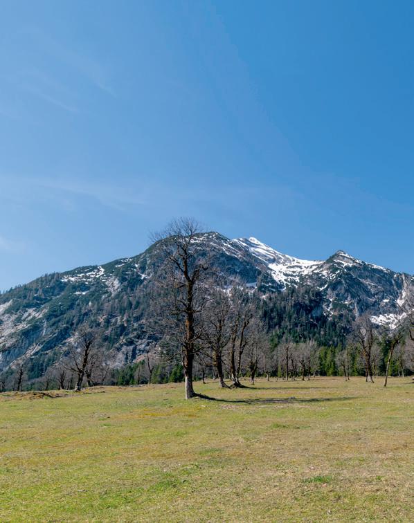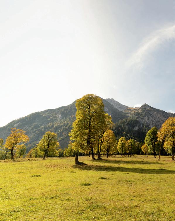 In der Silberregion Karwendel hat man dafür verschiedene Initiativen gestartet, um es den Gästen so einfach wie möglich zu machen, die Region auch ohne eigenes Fahrzeug unkompliziert zu erkunden. Neben dem eng getakteten öffentlichen Verkehrsnetz fährt der Eng-Bus von 14. Juni bis 11. Oktober 2023 immer mittwochs von Kolsass über verschiedene Stationen bis zum Naturdenkmal „Großer Ahornboden“ (siehe Geschichte Seite 16) und retour, das Hüttentaxi steuert von Mitte Juni bis Mitte September nach einem festen Fahrplan unterschiedliche Hütten in der Region an und der Sightseeingbus bringt Sie bequem von Sehenswürdigkeit zu Sehenswürdigkeit. Zudem hat der Fugger Express wieder Fahrt aufgenommen und zwei E-Bike-Verleihstationen halten die perfekten Geräte für eine Tour durch die Region (Tipps auf Seite 44) bereit. Und wer völlig unabhängig und individuell unterwegs sein möchte, nutzt die Elektroautos von floMOBIL nach einem klassischen Sharingmodell.