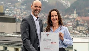 Die lebensphasenorientierte Personalpolitik ist fest in der Unternehmenskultur der TIROLER verankert und wird kontinuierlich weiterentwickelt. Dafür wurde der Versicherer abermals mit dem staatlichen Gütezeichen „berufundfamilie“ ausgezeichnet. Dieses wird ausschließlich an Unternehmen verliehen, die nachhaltige Rahmenbedingungen für echte Vereinbarkeit von Privatleben und Beruf schaffen.