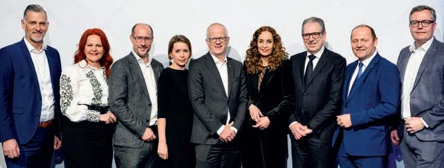 IV-Tirol-Vizepräsident Simon Meinschad, Landesrätin Cornelia Hagele, Landesrat Mario Gerber, IV-Tirol-Vizepräsidentin Gabriele Punz-Praxmarer, IV-Tirol-Präsident Max Kloger, Landesrätin Eva Pawlata, IV-Tirol-Vizepräsident Karlheinz Wex, LandeshauptmannStellvertreter Josef Geisler und IV-Tirol-Vizepräsident Holger König