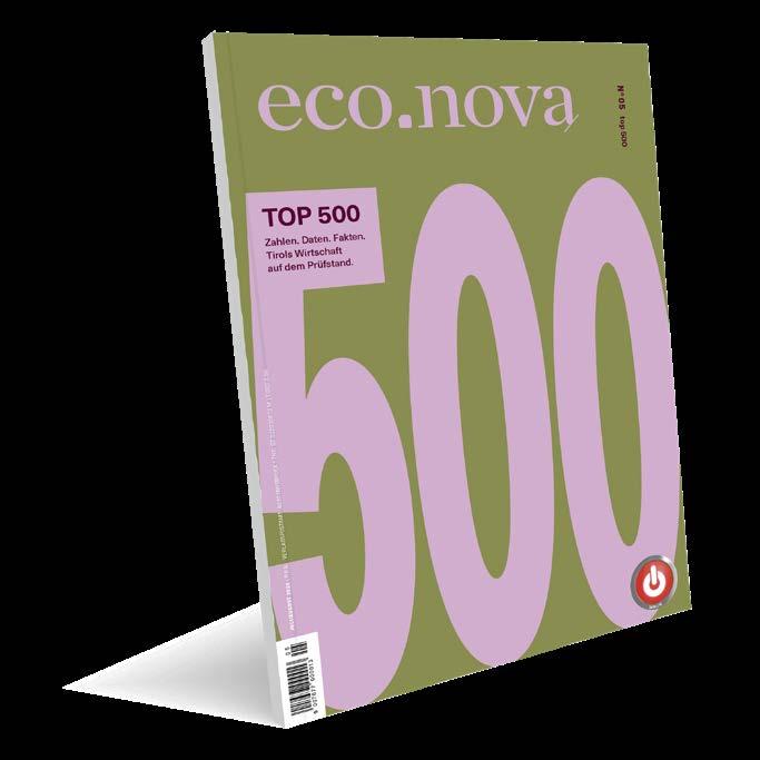 HERAUSGEBER & MEDIENINHABER: eco.nova Verlags GmbH, Hunoldstraße 20, 6020 Innsbruck, 0512/290088, redaktion@econova.at, www.econova.at GESCHÄFTS LEITUNG: Christoph Loreck, Mag. Sandra Nardin ASSISTENZ: Martin Weissenbrunner CHEFREDAKTION: Marina Bernardi REDAKTION: eco.wirtschaft: Marian Kröll, Alexandra Keller, MMag. Klaus Schebesta, DI Caterina Molzer-Sauper // eco.zukunft: Doris Helweg // eco.geld: Michael Kordovsky // eco.mobil: Felix Kasseroler // steuer.berater: Dr. Verena Maria Erian // eco.life: Marina Bernardi ANZEIGENVERKAUF: Ing. Christian Senn, Yvonne Knoll, BA LAYOUT: Tom Binder LEKTORAT: Mag. Christoph Slezak DRUCK: Radin-Berger-Print GmbH COVER: Dino Bossnini