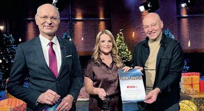 SPAR-Geschäftsführerin Patricia Sepetavc mit Georg Laich (li.) und Bernhard Triendl vom ORF Landesstudio Tirol