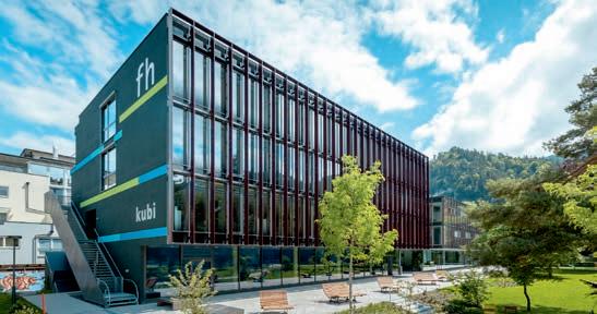 Die Fachhochschule Kufstein Tirol wurde heuer vom Wirtschafts magazin trend zur besten Arbeitgeberin Tirols gewählt (siehe Seite 34) und nimmt im Hochschulvergleich sogar Platz eins ein. Seit 25 Jahren bildet die Kufsteiner Fachhochschule in 24 Studiengängen Fachkräfte aus (13 davon sind berufsbegleitend), über 8.000 Absol vent*innen sind bereits quer durch die Welt tätig. Räumlich hat sich die Hochschule auf mittlerweile vier Gebäude erweitert, die ausrei chend Platz für Lehre und Forschung bieten. Aktuell sind rund 500 Mitarbeiter*innen beschäftigt. Ihr 25-jähriges Bestehen feierte die Hochschule Mitte Juli mit einem Festakt, im Zuge dessen zu einer Jedermann-Aufführung am Fuß der Festung Kufstein geladen wurde. www.fh-kufstein.ac.at