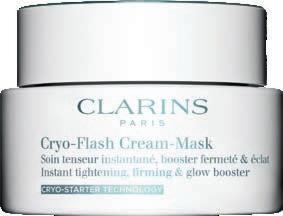 Die intensive Cyro-Flash Crememaske von Clarins ist inspiriert von ästhetischen Kältetechniken und sorgt mit ihrer Hochleistungsformel samt kraftvollen Aktivstoffen für eine jugendlich-frische Haut und einen sofortigen Liftingeffekt. 75 ml um 79 Euro gesehen bei Tachezy. www.tachezy.at