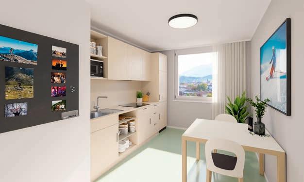 und kann mit einer Komfortlüftung sowie einer Photovoltaikanlage kombiniert werden. Bernhard Desing hat sich hier ein attraktives, kleines Wohn- und Bürohaus geschaffen, das individuell geplant und fit für die Zukunft ist. „In den eigenen vier Wänden soll man sich wohlfühlen und alles das machen können, was man gerne macht. Ich wohne gerne kompakt, ohne lange Wege, mit Bereichen, wo man einen Außenraumbezug hat, aber auch mit Bereichen, wo man sich zurückziehen kann. Ich halte nichts von riesigen Hallen, von langen dunklen Gängen, von vielen kleinen, schlecht nutzbaren Räumen, von Wohnzimmern, in denen nur der Fernseher den Mittelpunkt bildet, und von Freiflächen, die großzügig Autos geopfert werden. Entsprechend meiner Planungsphilosophie ‚Gebäude so individuell wie ihre Nutzer‘ ist der Neubau genau auf meine Bedürfnisse maßgeschneidert. Außerdem gibt es immer noch Entwicklungsmöglichkeiten für zukünftige Wünsche, indem zum Beispiel der Massivbau-Teil durch eine Aufstockung erweitert werden könnte. Ein Grundstück in Hanglage mit unverbaubarer Aussicht wäre natürlich ein Traum, stattdessen hat mein Grundstück den Vorteil, in einer verkehrs- und infrastrukturmäßig gut erschlossenen ruhigen Wohngegend zu liegen. Als Student hätte ich mir eine Dachgeschoßwohnung erträumt, langsam entdecke ich aber auch die Vorteile eines Gartens. Die Gestaltung der Freiflächen rund um mein Haus ist noch nicht abgeschlossen und wird der nächste Schritt zu meinem persönlichen Wohntraum.“ www.desing.at
