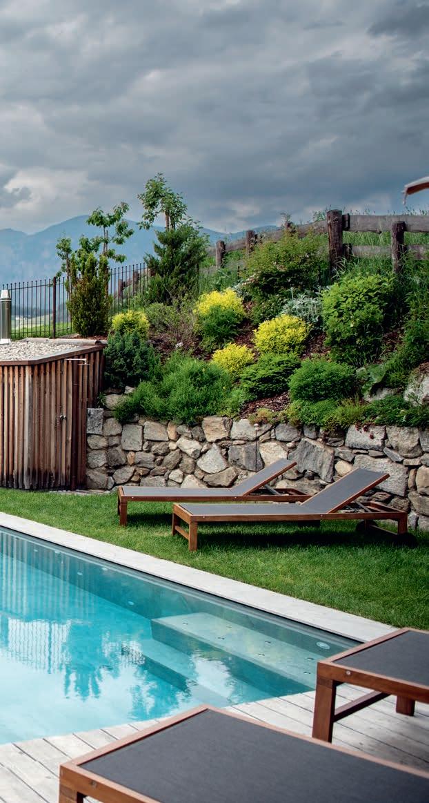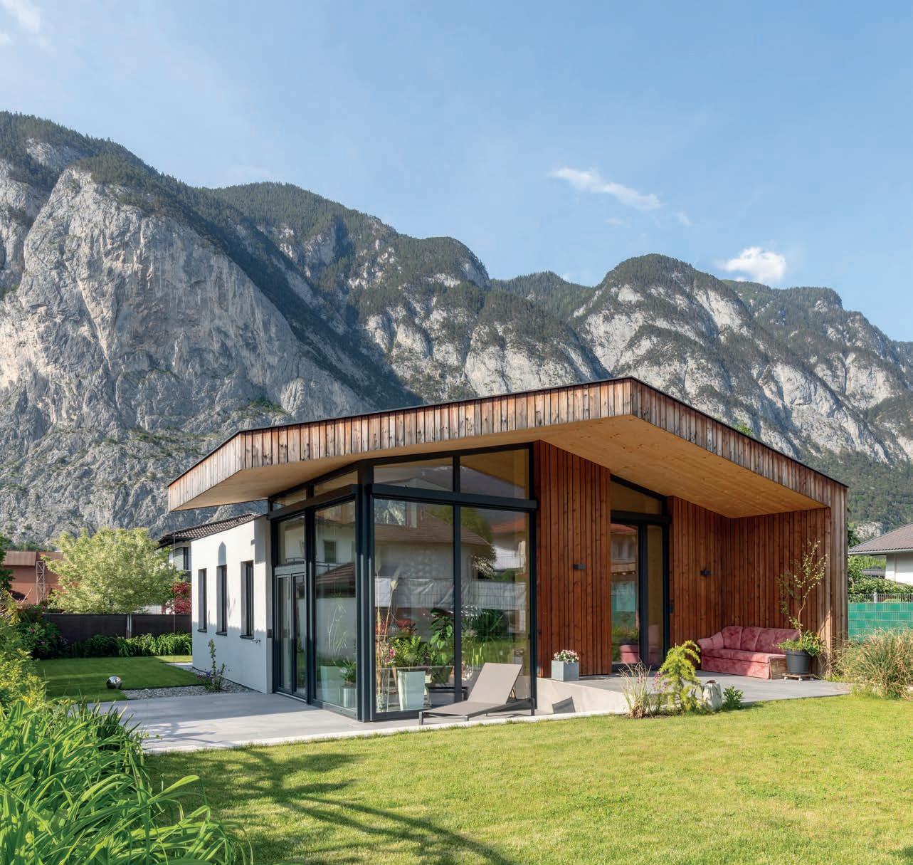 dem neuesten Stand der Technik anzupassen, war mit sehr viel Energie und Detailarbeit verbunden. Trotzdem konnte man die Synergien aus Alt und Neu miteinander vernetzen und ein Domizil für die ganze Familie schaffen, die 2010 einzog. Zusätzlich wurde in der Wohnstruktur ein Haus für die eigenen Eltern inkludiert, die somit ihren Lebensabend in einem modernen Holzhaus genießen können. Meinen Entwurf würde ich heute gleich machen, kleine Adaptierungen an Fassade und Gebäudehülle würden mit einfließen. Ansonsten entspricht das Haus meinen Wünschen, da ohnehin ständig experimentiert und umgestaltet wird. Bei meinem Traumhaus würde ich vermutlich mehr mit Materialien spielen, da mit etwas mehr Budget natürlich mehr Möglichkeiten entstehen würden. Mein Lieblingsplatz ist meine Outdoorküche mit Terrasse und anschließendem Pool. Dieser Bereich dient auch als Homeoffice in der wärmeren Jahreszeit und bietet genügend Platz für ein Beisammensein mit der Familie und Freunden beim Essen und Chillen.“ www.autarc.tirol