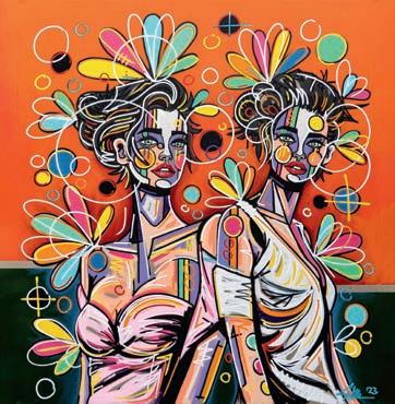 MESSEGRÜNDERIN JOHANNA PENZInnsbruck David Tollmann, „sunset twins“, Acryl auf Leinwand, ARTEG moderne Kunst, Tegernsee/Deutschland Pengő János Gergő, „Konyhai rendszerező készlet, Küchenordner-Set“ aus der Installation „Café“, 2023, Porzellan unterschiedlicher Größe, Kunstfakultät der Universität Pécs/Ungarn
