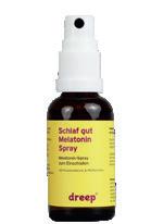 Das Hormon Melatonin steuert den Tag-NachtRhythmus und ist somit essenziell für eine guten Schlaf. Der Schlaf-gut-Spray von dreep soll mit Passionsblume und Pfefferminze auf natürliche Weise helfen, dem Körper zusätzliches Melatonin zuzuführen und dadurch die Einschlafzeit zu verkürzen. Dafür sprüht man einfach zwei Stöße rund eine halbe Stunde vorm Schlafengehen unter die Zunge. 30 ml um 19,90 Euro unter www.dreep.com