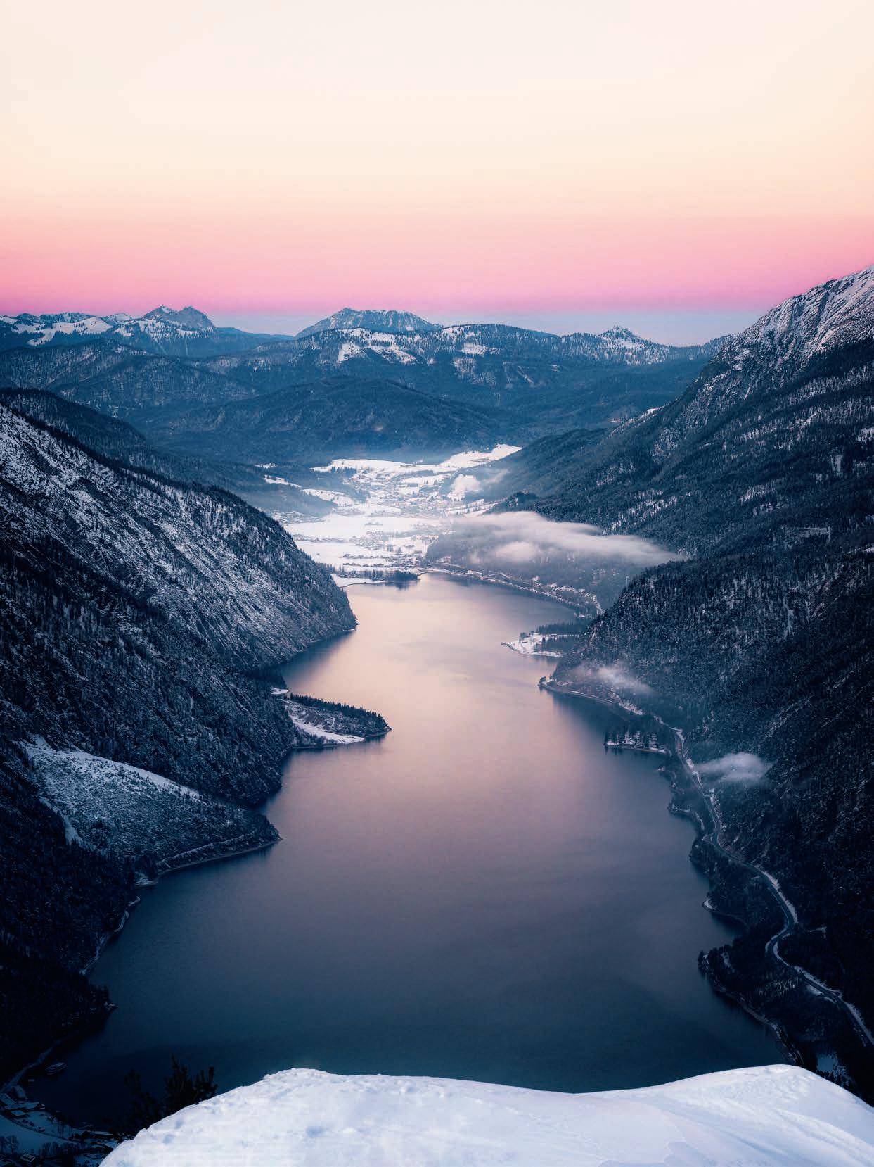 Still und klar liegt er zwischen angezuckerten Bergen und unter einer Decke aus kalter Luft, das Wasser spiegelglatt. Im Winter entfaltet der Achensee seinen ganz besonderen Zauber, ruhiger als im Sommer, friedlicher vielleicht. Wegen seiner Tiefe von bis zu 133 Metern friert der See nicht zu, die Achenseeschifffahrt legt auch in der kalten Jahreszeit ab.