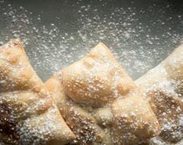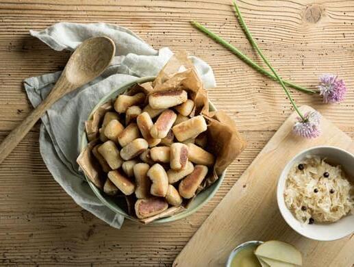 » Die Käsestücke im Mehl wenden, in die Eimasse tauchen und in den Bröseln wälzen. Anschließend die Stücke erneut in die Eiermasse tauchen und ein zweites Mal in Bröseln wenden. (Darauf achten, dass die Käsestücke komplett mit Panier bedeckt sind, damit der Käse beim Herausbacken nicht austritt.)