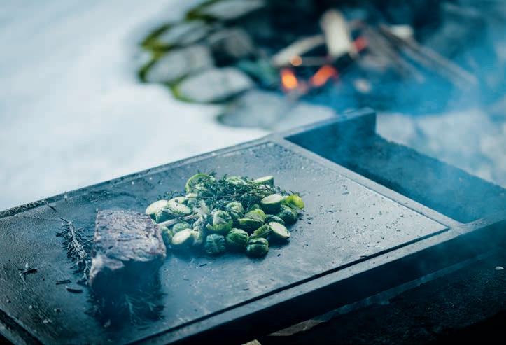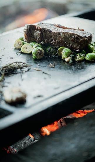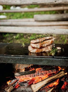 hängt sowohl von der Temperatur im Griller als auch von der Garzeit ab. Mehr Hitze erzeugt mehr Röstaromen, birgt aber die Gefahr, dass das Fleisch zu trocken wird. „Beim Grillen ganzer Stücke kann man sich damit behelfen, im Griller eine Schale mit einer Flüssigkeit zu platzieren, damit sich Dampf entwickeln kann. Für Wildfleisch nehme ich meistens einen Rotwein, für Schweinefleisch Bier“, rät der Meister, der seinen Hirschrücken bevorzugt bei 120 °C im Wassersmoker macht. Das dauert ein paar Stunden, zahlt sich aber aus. „Das langsame, schonende Grillen wirkt sich extrem positiv auf die Wasser-Eiweiß-Bindung aus. Das ergibt ein besonders saftiges Fleisch.“ Beim Marinieren rät Krösbacher generell dazu, das Salz anfangs lieber wegzulassen und stattdessen stärker mit Gewürzen zu arbeiten. „Längeres Marinieren ist bei ganzen Stücken besonders wichtig, weil die Gewürze besser ins Fleisch einziehen“, so der Grillprofi.