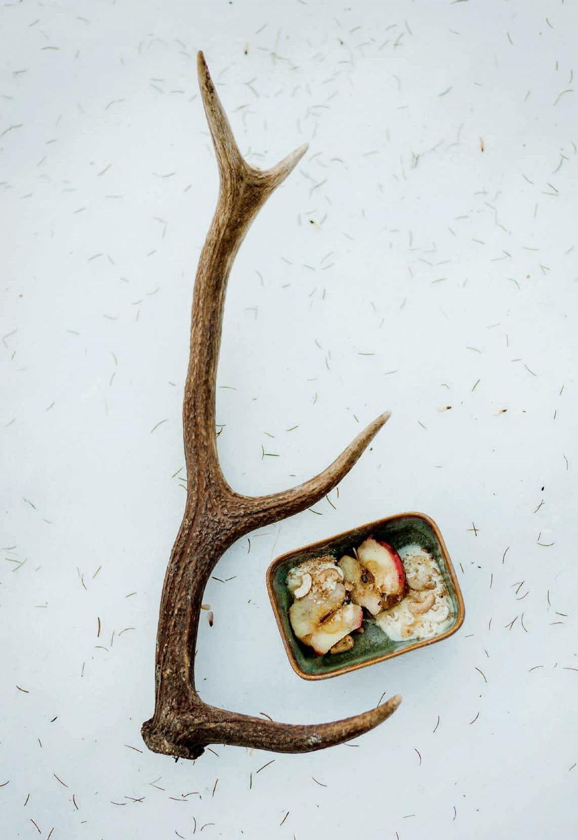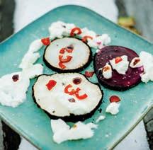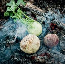 So wie den Apfel kann man auch Gemüse wie Kohlrabi, Sellerie und Rote Bete den Flammen übergeben. Nach zwei Stunden in der Glut ist das Gemüse außen verkohlt, aber innen wunderbar zart und unglaublich geschmacksintensiv. In Scheiben schneiden, mit Schafsjoghurt, altem Balsamico, scharfem Paprika, grobem Salz und einem Schuss Olivenöl servieren.