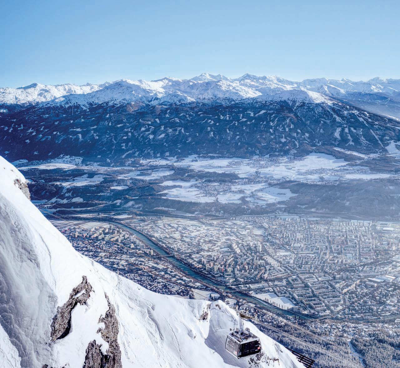 It’s easy to get a taste for the winter in the Innsbruck region - whether you’re looking for a sporting challenge on the mountain or want to in dulge in some winter magic in Innsbruck’s city centre. In fact, it’s easy to experience both on the same day, because the distances between the city and the mountain are so short. The alpine-urban variety of ex periences invites you to enjoy its numerous advantages in its sparkling winter clothing.