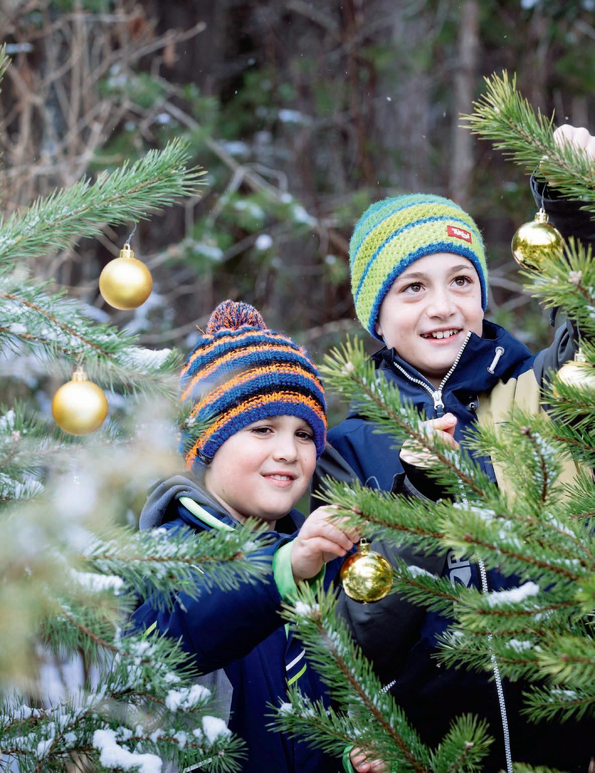Richtig: Sie wollen es schmücken und so Teil des Mieminger ChristbaumWeges sein. // What are those families playing at when they walk through the woods covered in fresh snow and then decide to stop at a small tree? They want to decorate it as part in the Mieming Christmas Tree Trail project.