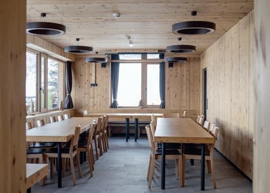 Over time, the environment and subsequently the hut itself changed. Through necessity, as Tabernig recounts: “We were squeezed in by hotels over the years.” At some point it became difficult to keep on going with mattress dormitories and so the Dortmunder Hütte has been rebuilt over the last three years. Now there are still dormitories, but also modern, friendly double or four-bed rooms with shower and toilet. There is also a seminar room used, for example, for avalanche courses. “We don’t need a swimming pool, of course, but a shower is no longer a luxury, but a matter of course,” says Tabernig. Yet despite all the convergence towards a hotel standard, Alpine Club rules still apply at the Dortmunder Hütte. There is tea water, a cheap mountain eering meal and those who are alpine club members pay less for the overnight stay. In winter Tabernig accommodates ski tourers and “lift ers” and, in summer, hikers. Its location next to the road also brings it “passing trade”, which of course does not exist at a high alpine refuge.