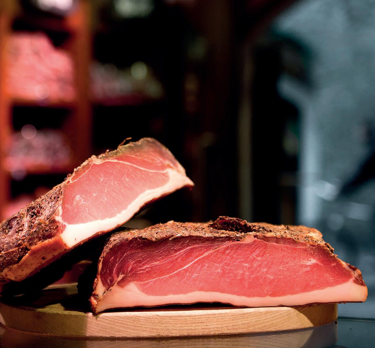 S’REGIONAL. Mit Speck kennt man sich in Tirol aus. Und mit allen anderen Wurstspezialitäten auch – Salami zum Beispiel. Im s’Regional direkt unterm Goldenen Dachl finden Sie eine wunderbare Auswahl an regionalen Schmankerln zum Selber essen und Mitbringen, darunter herzhafte Besonderheiten von der Metzgerei Krösbacher aus Fulpmes // Tyrol knows its way around cured bacon. And with all the sausage specialities too - salami, for example. At s’Regional, directly under the Goldenes Dachl, you will find a wonderful selection of re gional delicacies to eat yourself or to bring home, including hearty specialities from the Krösbacher butchery in Fulpmes.
