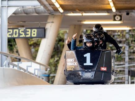 Drei Tage lang wird der Platz vor dem Landestheater zum Win ter-Sports-Village, wo Interessierte selbst Sportarten ausprobieren können, an die sie sich bisher noch nie gewagt haben. Ob Snowboard, Ski Alpin, Bobfahren, Skispringen, Rodeln oder Eisstockschießen – das SnowFest Innsbruck bietet Wintersport in geballter Form bei freiem Eintritt für alle. Zum Kennenlernen und Ausprobieren an diversen Stationen, ob am Simulator, auf der Matte oder auf Schnee. Wer weiß, vielleicht entdeckt ja jemand Marita Kramer, Manuel Feller oder Jani ne Flock in sich? Partner sind unter anderem das Austria Skiteam, der Innsbrucker Eishockeyverein „Die Haie“, der Tiroler Bob- und Skeleton verband und – quasi selbstverständlich – die Stadt Innsbruck sowie der Innsbruck Tourismus.