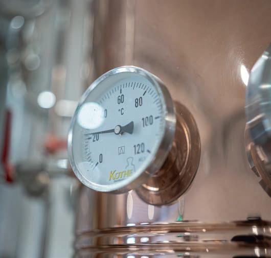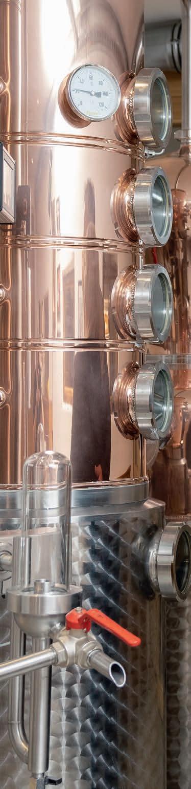Vor einigen Jahrzehnten gab es im Schöberlhof noch Kühe, Mo nika und Anton Steixner züchteten später stattdessen das „Wei ße Tiroler Bergschaf“. Und betrieben ein Kaffeehaus. Im Jahr 2010 geschah schließlich etwas, das die Welt der Familie umkrempeln würde: Zuerst absolvierte Monika, dann ihr Mann Anton einen Kurs zum Schnaps-Sommelier, wodurch ihr professionelles Interesse für Hochprozentiges geweckt war, erzählt Anton Steixner: „Das hat mich immer schon fasziniert, aber erst durch die Ausbildung habe ich mich mit dem Thema intensiver beschäftigt.“ Es sollte nicht bei der Theorie bleiben. Im Zuge des Hausumbaus 2015 planten die Steixners Räume für eine Brennerei sowie ein Restaurant ein. 2016 tropfte schließlich der erste Brand aus dem Kessel. Und es lief sprich wörtlich gut, erinnert sich der Hausherr: „Natürlich habe ich in der Theorie gewusst, wie es funktioniert. Aber wenn man dann das erste Mal allein vor dem Kessel steht, schaut die Sache schon anders aus.