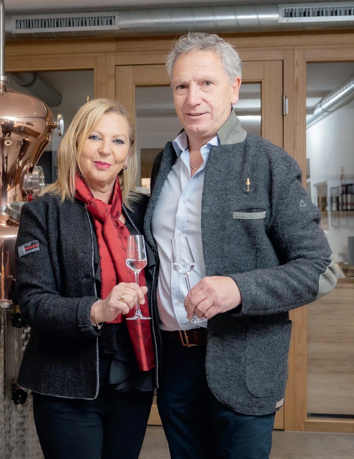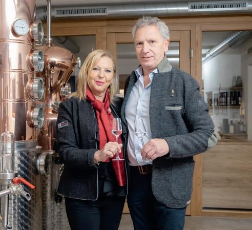 not always possible, which is why the rowan berries, for example, come from Kals am Großglockner, Monika Steixner’s home. The “Kalterer Böh mer”, an old apple variety, is picked in the “cornily beautiful” castle gar den of Count Trapp in Schluderns in South Tyrol. It is accompanied by quite exotic brandies made from oranges and mandarins. Anton Steix ner: “We buy them from the trade, but the fruit stays on the tree as long as possible. And you can tell that.” In any case, as his wife explains, the main rule is: “We don’t distil anything that we wouldn’t eat ourselves.”
