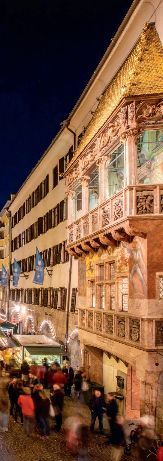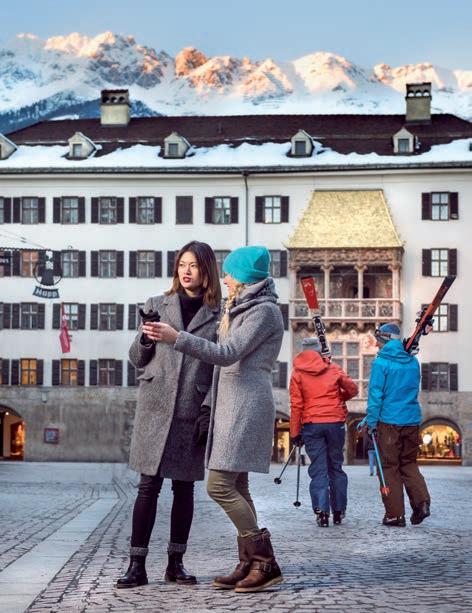 I am already looking forward to the pre-holiday atmosphere at the Christmas markets and the exciting “journey around the world” at LUM AGICA Innsbruck in the Hofgarten. I am particularly proud to be able to present such a wide range of activities in our winter activities pro gramme for our guests. Everyone is catered for, from family-friendly hikes with alpacas to challenging snowshoe hikes with a summit expe rience. Participation is free of charge with our Welcome Card, which is issued by our partner establishments for stays of two nights or more. I recommend the SKI plus CITY Pass for those who want to enjoy both the city and the mountain experience to the full. This includes both skiing in the ski areas around Innsbruck and in the Stubai valley and admission to swimming pools as well as sights and museums in the city.