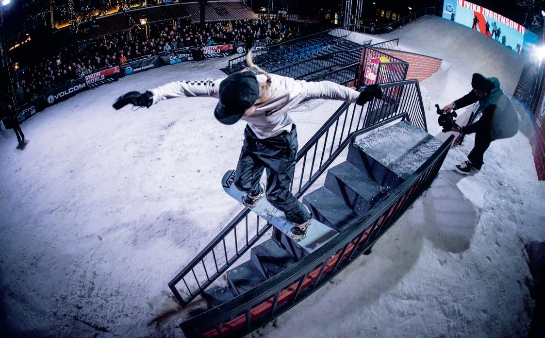 Noch heftiger geht es am Samstag zu, wenn erstmals der Rock A Rail Snowboard Contest nach Innsbruck kommen wird. Der Street-Snow boarding-Contest, der 2011 als lokale Rail-Jam im Herzen von Den Haag in den Niederlanden startete, hat sich über die Jahre zu einem erstklassigen Rail-Contest mit über 13.000 Besucherinnen und Besu chern entwickelt. Den Stellenwert zeigt unter anderem das Starterfeld der letzten Jahre, das sich wie das Who is who der Street-Snowboar ding-Szene liest. Rock A Rail will das Gefühl der coolen Snowboard videos in die Stadt bringen, irre Action und gewaltige Tricks von den Besten der Besten sind garantiert. Die aufgebaute Rampe ist 37 Meter lang und acht bzw. 11,5 Meter hoch. Von dieser gilt es auf verschie densten Rails – Geländer, Mauerkanten – zu springen und möglichst gewagte Figuren zu vollbringen. Ein fetter Sound darf dazu natürlich nicht fehlen …